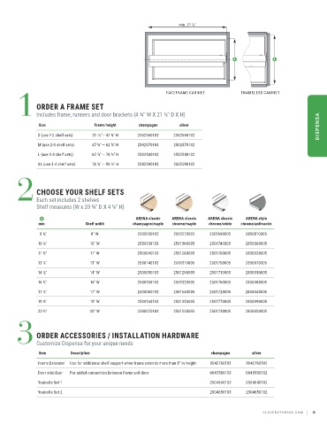 L (use 3-4 shelf sets) 62 ⅞" — 78 ¾" H 2502580103 2502580102